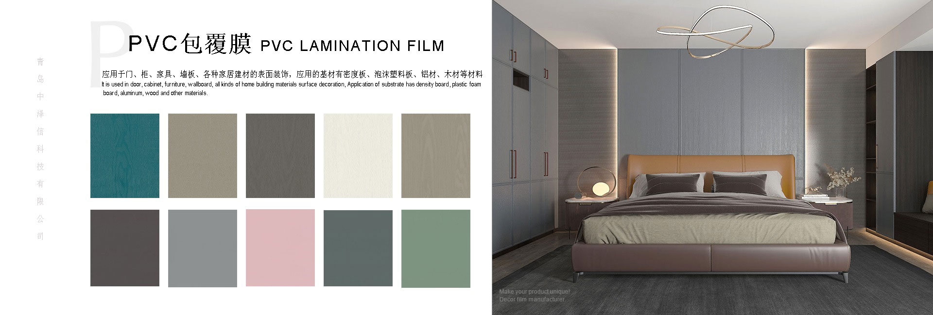 應(yīng)用于門(mén)、柜、家具、墻板、各種家居建材的表面裝飾,應(yīng)用的基材有密度板、泡沫塑料板、鋁材、木材等材料。